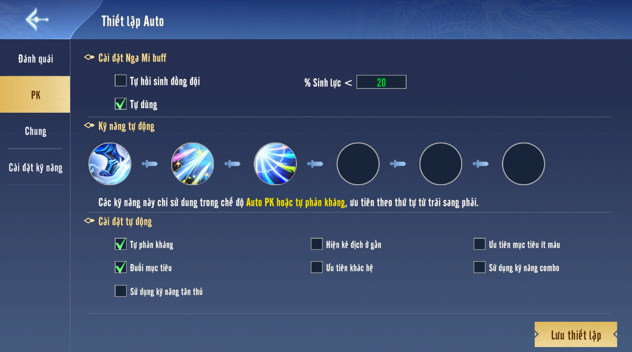 Phạm vi tìm mục tiêu của auto PK sẽ dựa vào phạm vi kĩ năng cài đặt